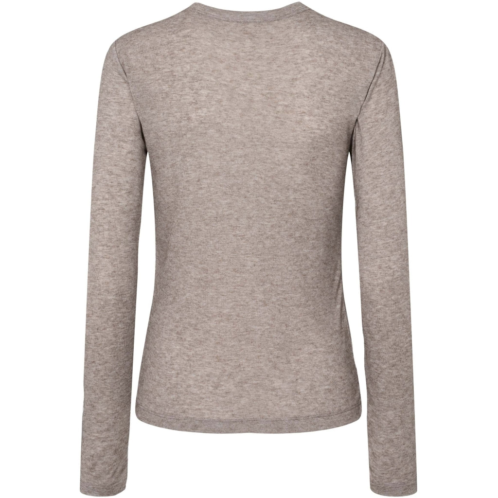 Lækker blød langærmet t-shirt med 20% uld! Den perfekte 'undertrøje' til under dine skjorter, bluser og strik, på kolde dage. Blusen har almindelig rund hals, og er kropsnær.