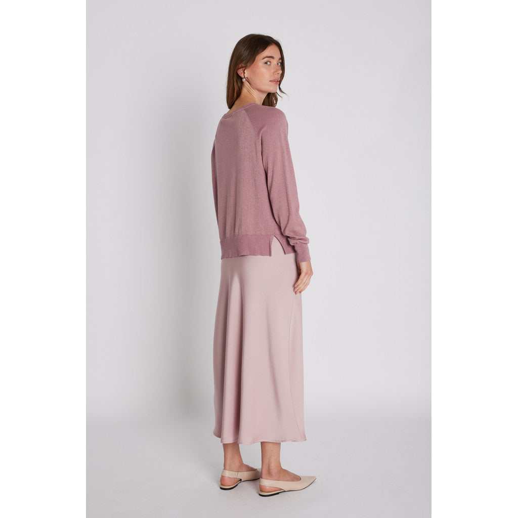 Skab et elegant tone-i-tone look ved at style Ello Skirt med Bekka Knit Sweater i samme Mellow Mauve nuance og et par støvler eller pumps. For et mere afslappet udtryk kan du kombinere den med en crisp hvid skjorte og sneakers – eller en lækker strik i grå for et mere afdæmpet hverdagslook.