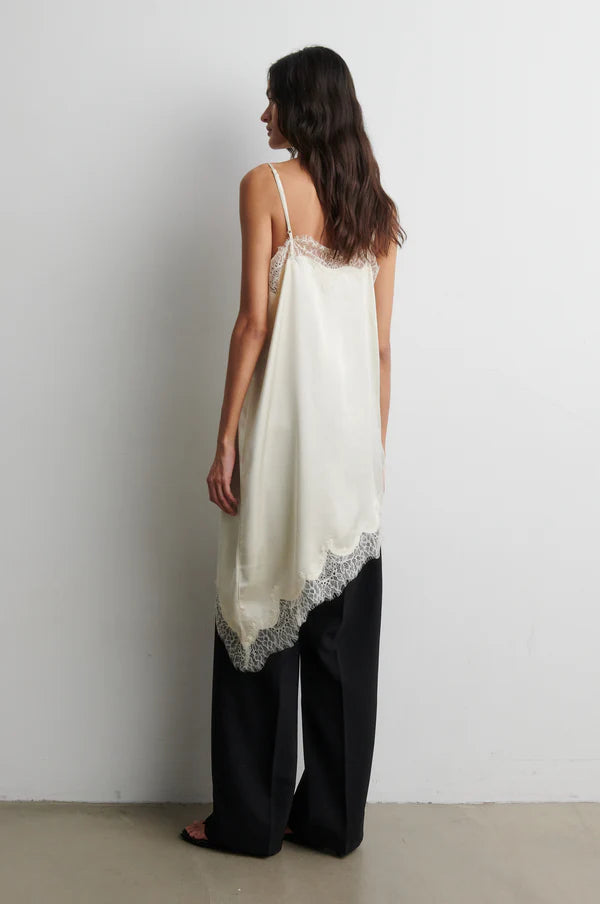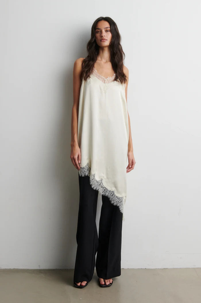 Trenden med underkjoler kommer for alvor til at dominere foråret 2026. Denne i ren viskose fra Second Female, er elegant, flot finish og brugbar både over bukser eller som kjole i sig selv. Brug den over jeans med en strik for et cool hverdags udtryk, eller over flared sorte bukser med en blazer for et mere formel udtryk.