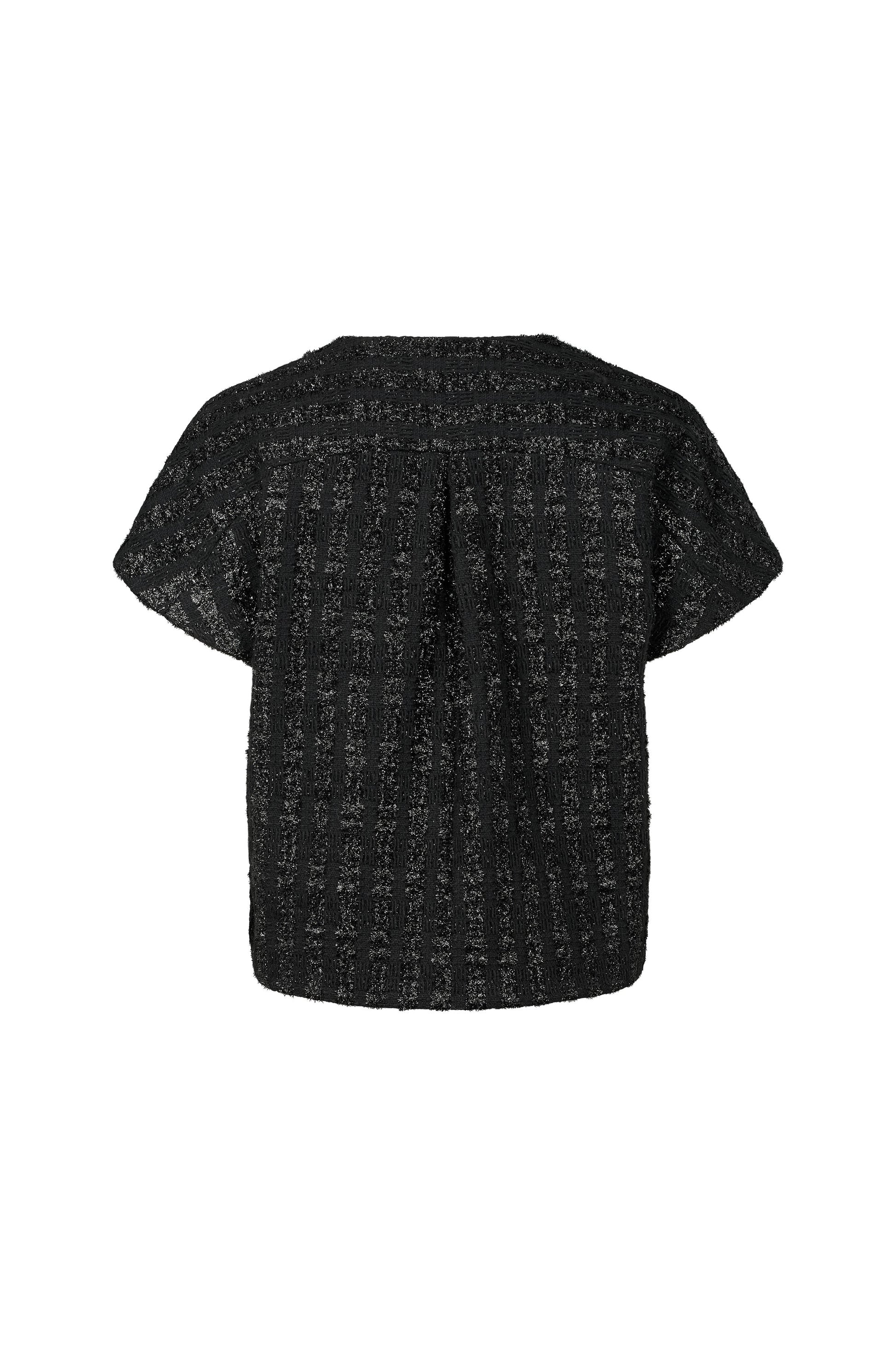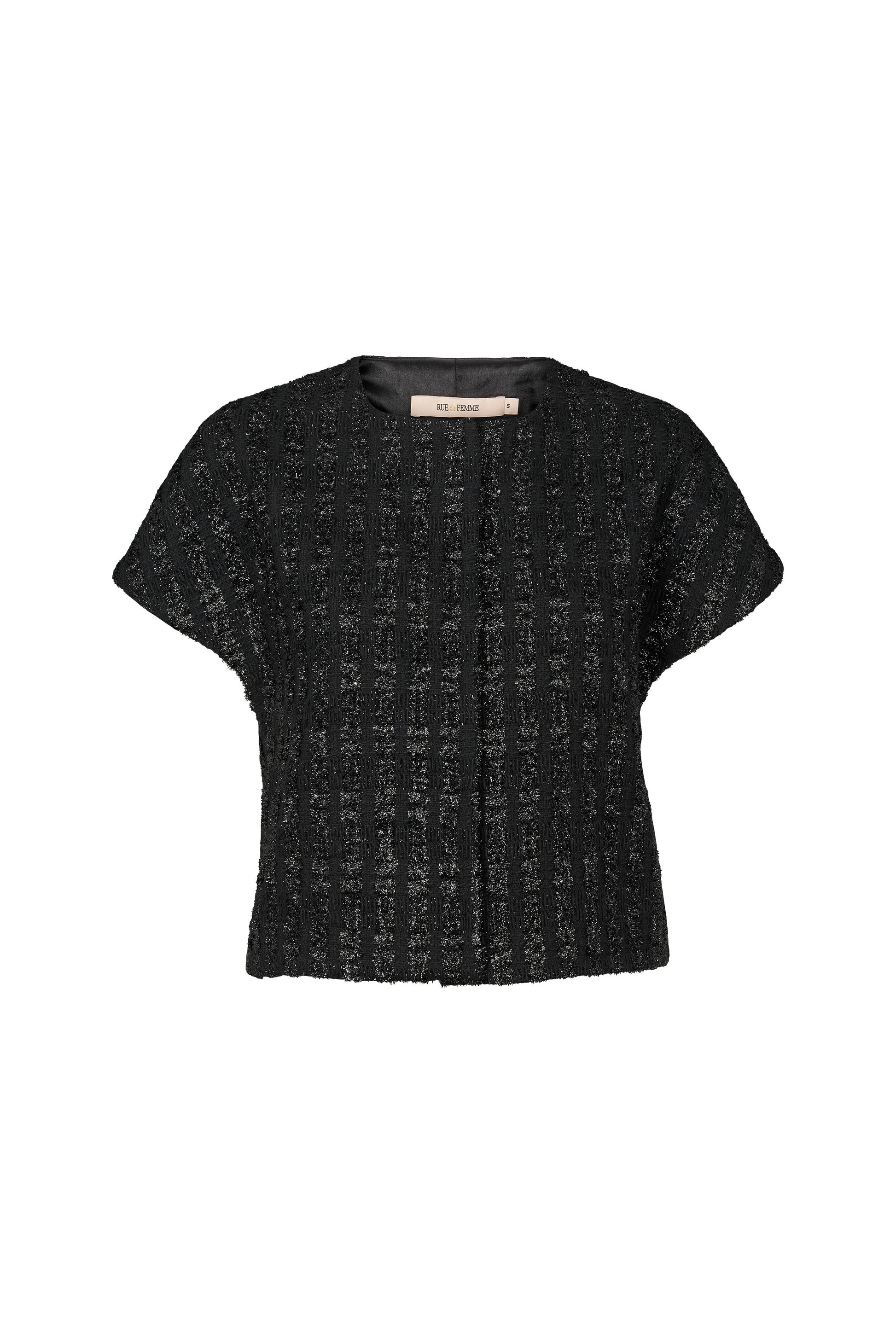Designet har en rund halsudskæring, en let cropped længde og en let løs pasform, der gør den både behagelig og stilfuld. Den strukturerede vævning giver dybde og et flot spil i stoffet – perfekt til både hverdags- og aftenlooks.